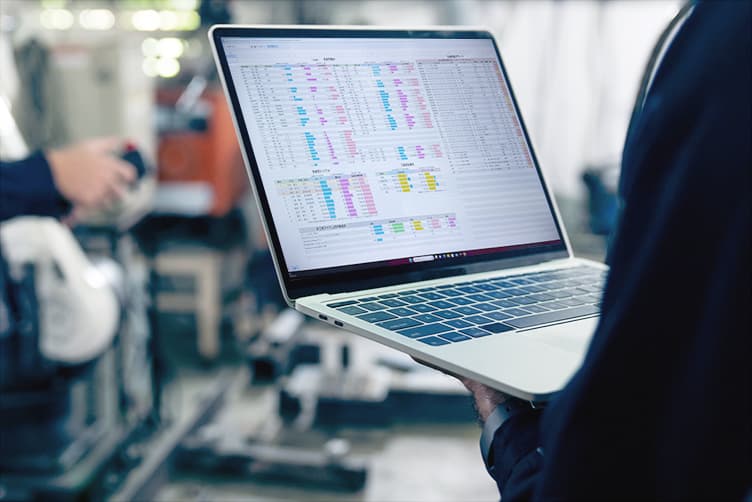 多種多様な部材を管理するため、クラウド生産管理システムを導入。日々の生産状況を正確に把握し、生産体制の効率化を実現しています。