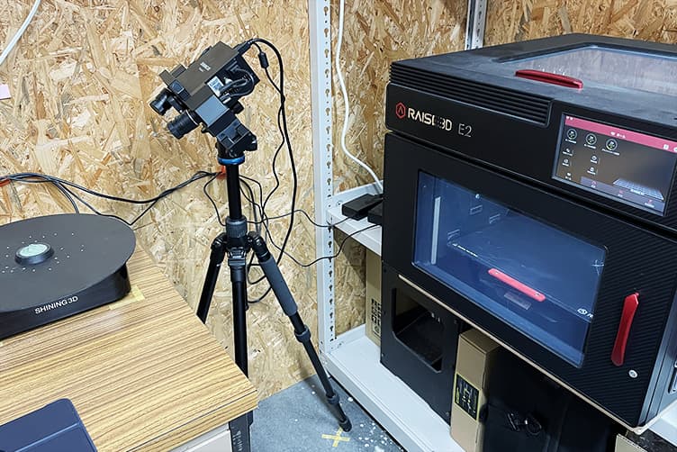 通常、治具は直接製品の型を取って製作しますが、楽月工場では、3Dスキャナー/3Dプリンターを使って高精度な治具を短時間で製作しています。